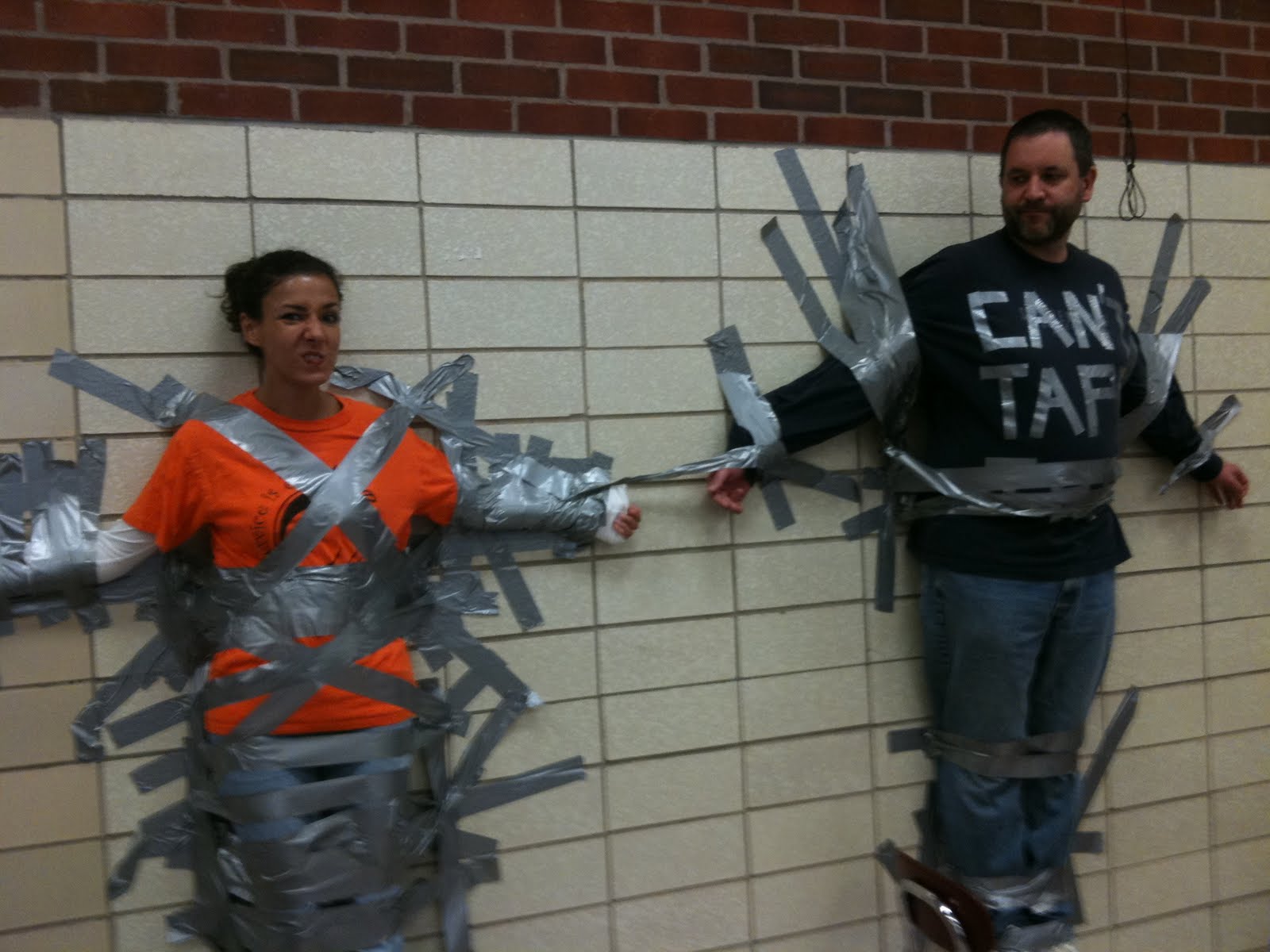 Mr. Peterman's physics classes tend to put together some very well-done, engaging culminating projects to illustrate the many concepts discovered in studying the physics. Teams of students designed life-size catapults designed to hurl water balloons at their beleoved Mr. Peterman. On the last week of school, they carried out their mission, had a great time doing it, and illustrated how great phsyics can be! Kudos to the students who created some phenomenal contraptions and to Mr. Peterman on a job well done!